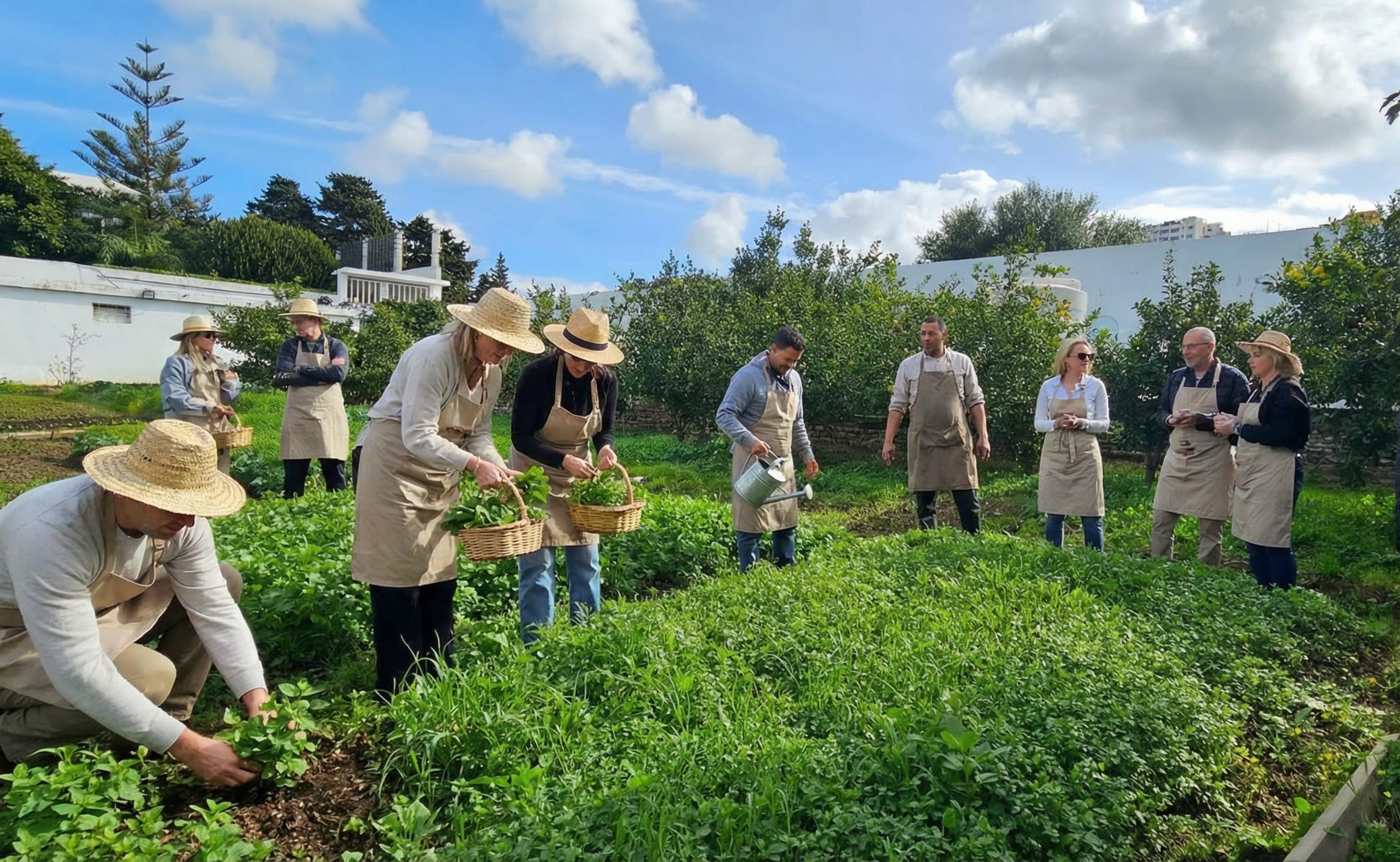 This unique experience begins in our private garden, where guests harvest fresh vegetables, herbs, and seasonal ingredients that will be used during the cooking session. This step allows participants to understand the importance of fresh and local products in traditional Moroccan cuisine and connect directly with the ingredients they will cook with.