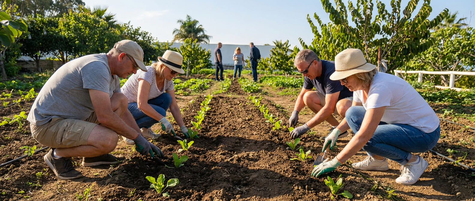 Farm-to-table Moroccan cooking experience in Tangier where guests harvest fresh ingredients from the garden, cook traditional recipes with a local chef, and enjoy the meal they prepare together at Mnar Castle in an authentic and welcoming setting.