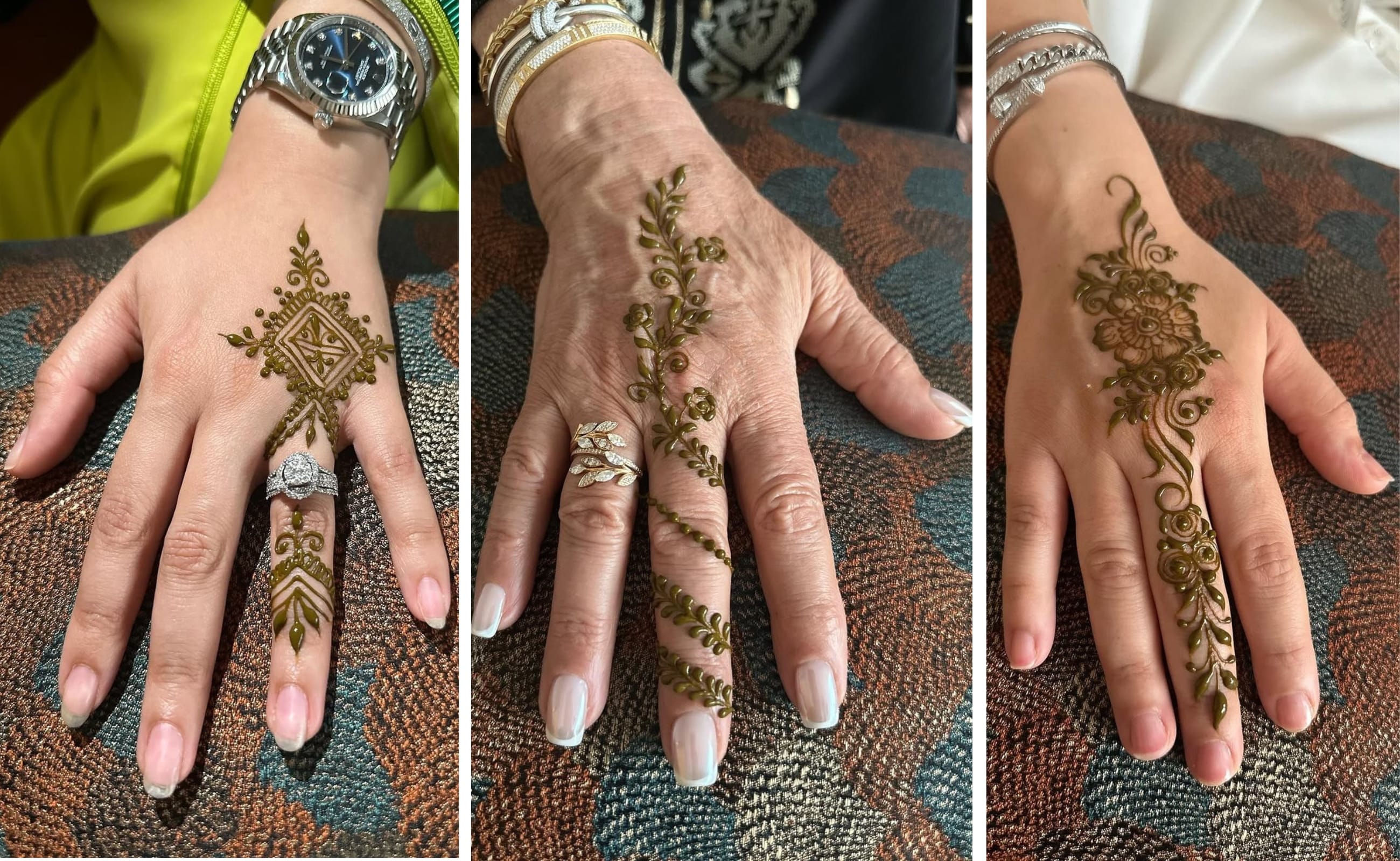 As the henna is carefully drawn, you can relax, observe the technique, and take photos. The artist will adapt the design according to your preference and the time available. At the end of the session, you will receive clear aftercare instructions to help achieve a deep, long-lasting color.